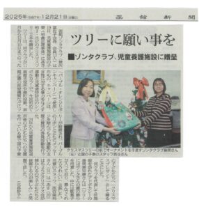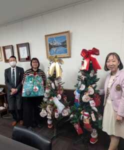 女性への暴力防止、児童虐待防止を啓発する「パープル・オレンジリボンキャンペーン」のために購入したツリーを児童養護施設「函館国の子寮」さんへプレゼントいたしました。ツリーには、駄菓子のクリスマスギフトをオーナメント代わりに飾り付け差し上げました。みなさまのキャンペーンへのご協力ありがとうございました。